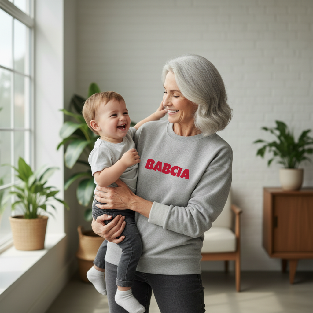 Dla Babć, które kochają nowoczesny design i subtelny styl. Ta wersja naszej flagowej bluzy charakteryzuje się nową, finezyjną czcionką, która nadaje projektowi lekkości i unikalnego charakteru. To idealny wybór dla Babci „na czasie”, która ceni sobie minimalizm, ale chce podkreślić swoją wyjątkową rolę w sposób stylowy i nieoczywisty. Zamszowy nadruk flock dodaje całości luksusowego wykończenia, sprawiając, że bluza staje się ulubionym elementem garderoby.