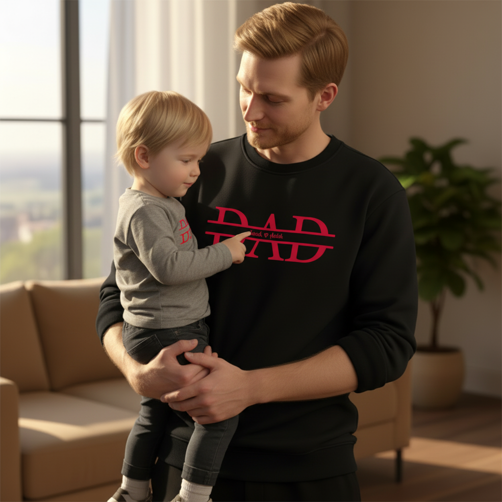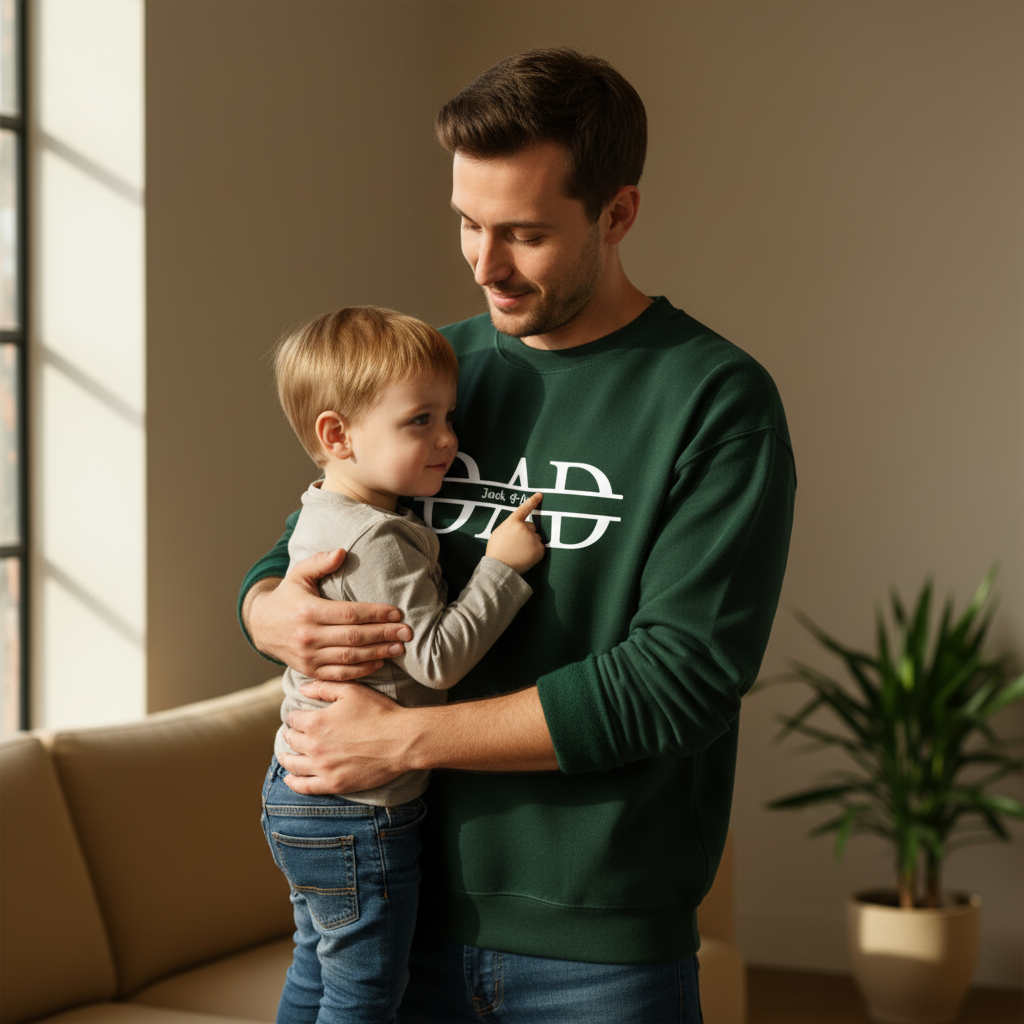 Stworzona dla ojców, którzy chcą nosić swoją dumę w samym centrum. To projekt odważny, a jednocześnie pełen czułości – idealny dla mężczyzny, dla którego rodzina to cały świat. Miękki materiał i zamszowy nadruk sprawiają, że bluza nie tylko wygląda prestiżowo, ale jest też niezwykle komfortowa w noszeniu.