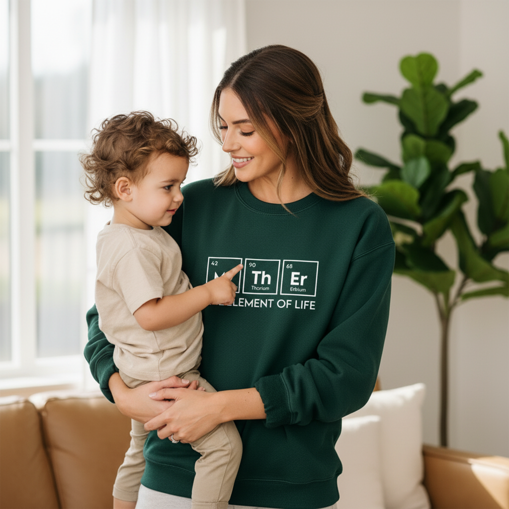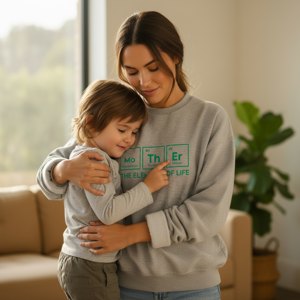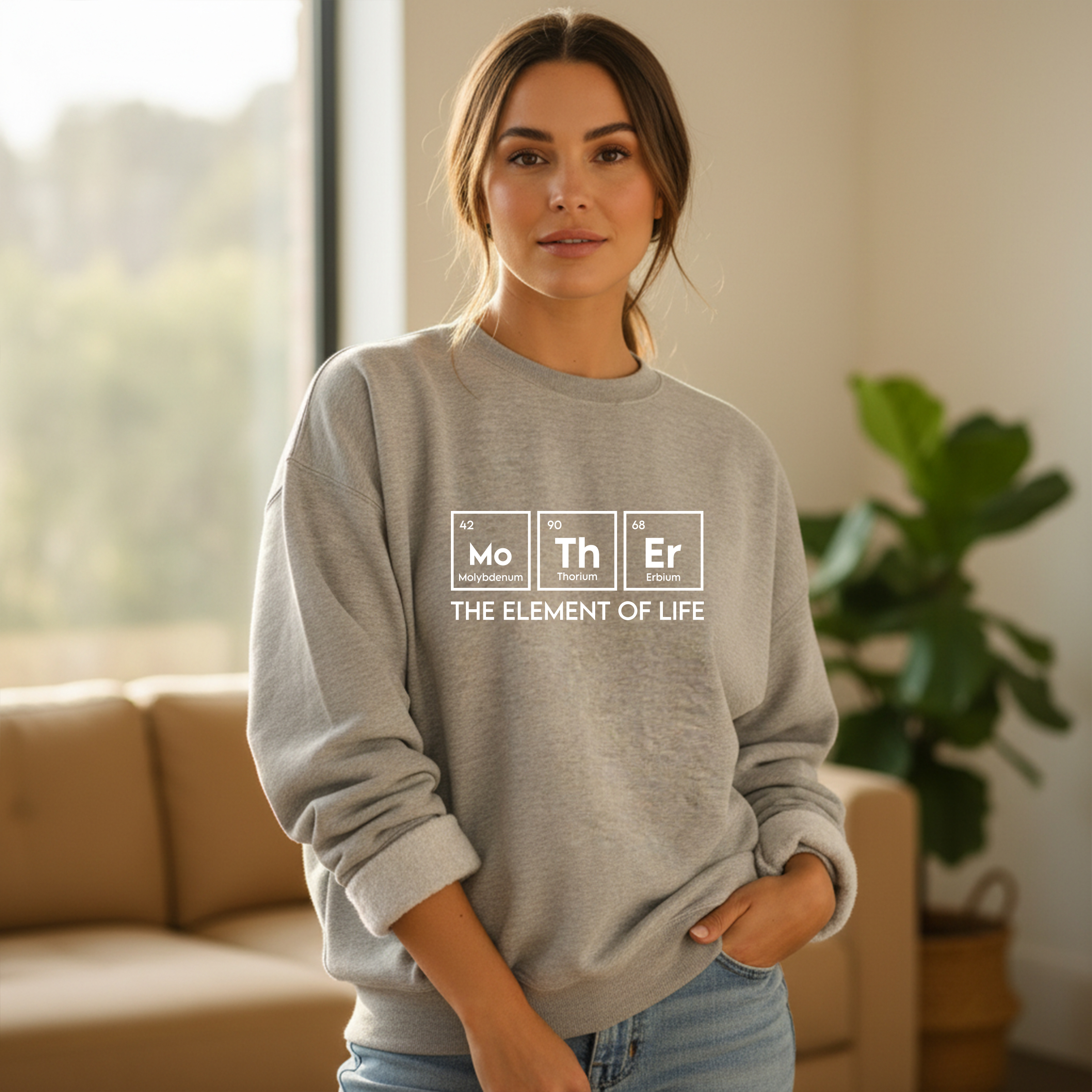 Mówią, że wszystko we wszechświecie składa się z pierwiastków, ale każda rodzina wie, że jej najważniejszym fundamentem jest… Mama. Nasza bluza „MOTHER – Element of Life” to unikalne połączenie naukowego designu z poruszającym przesłaniem. Przedstawienie tytułu Mamy w formie symboli z tablicy Mendelejewa (Mo Th Er) to hołd dla Twojej niezwykłej natury – jesteś elementem, który spaja wszystko w jedną, harmonijną całość.