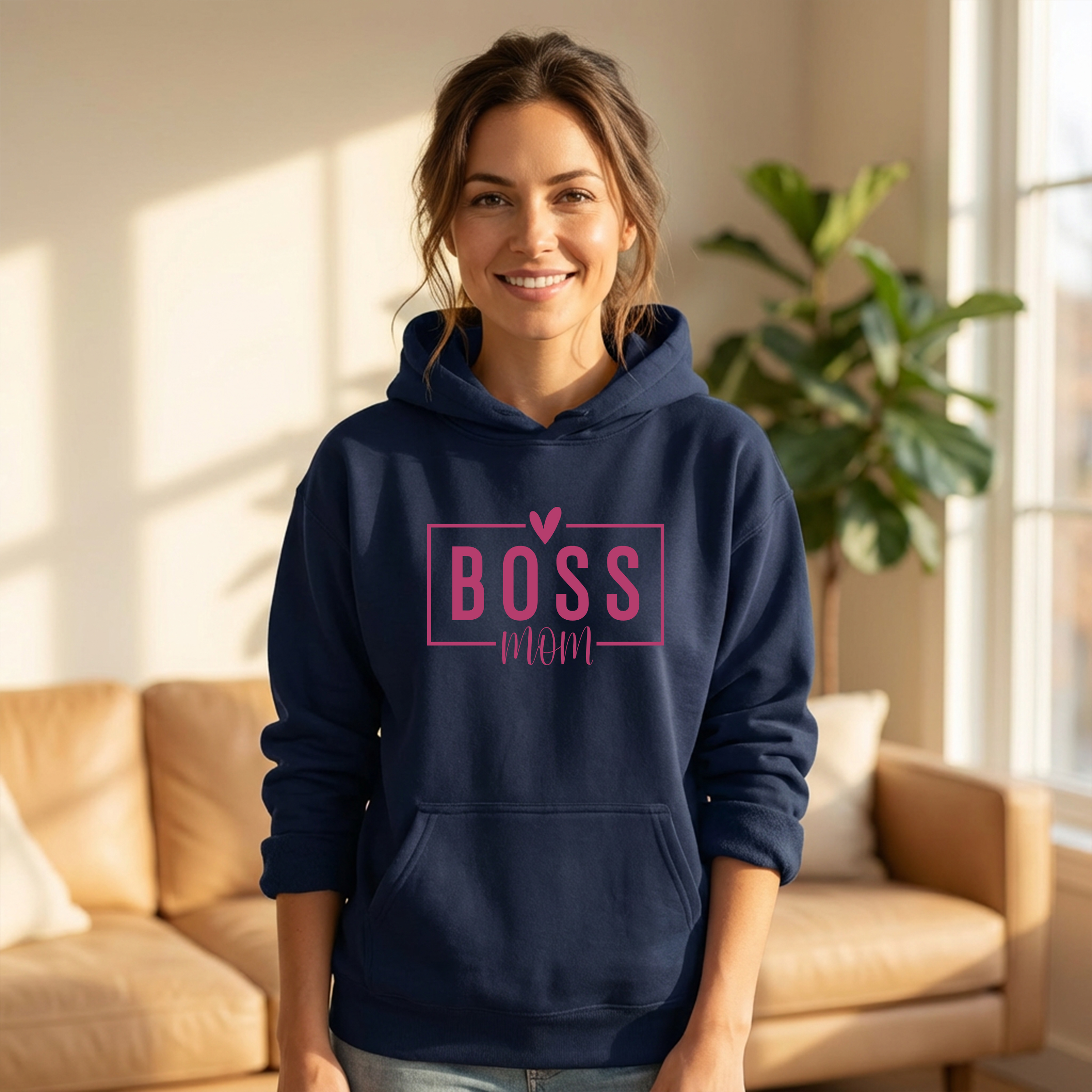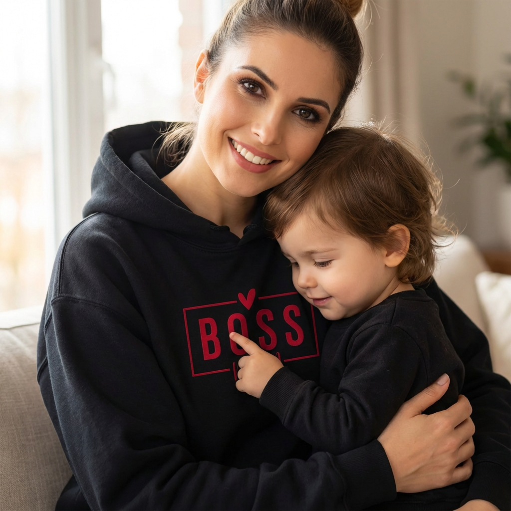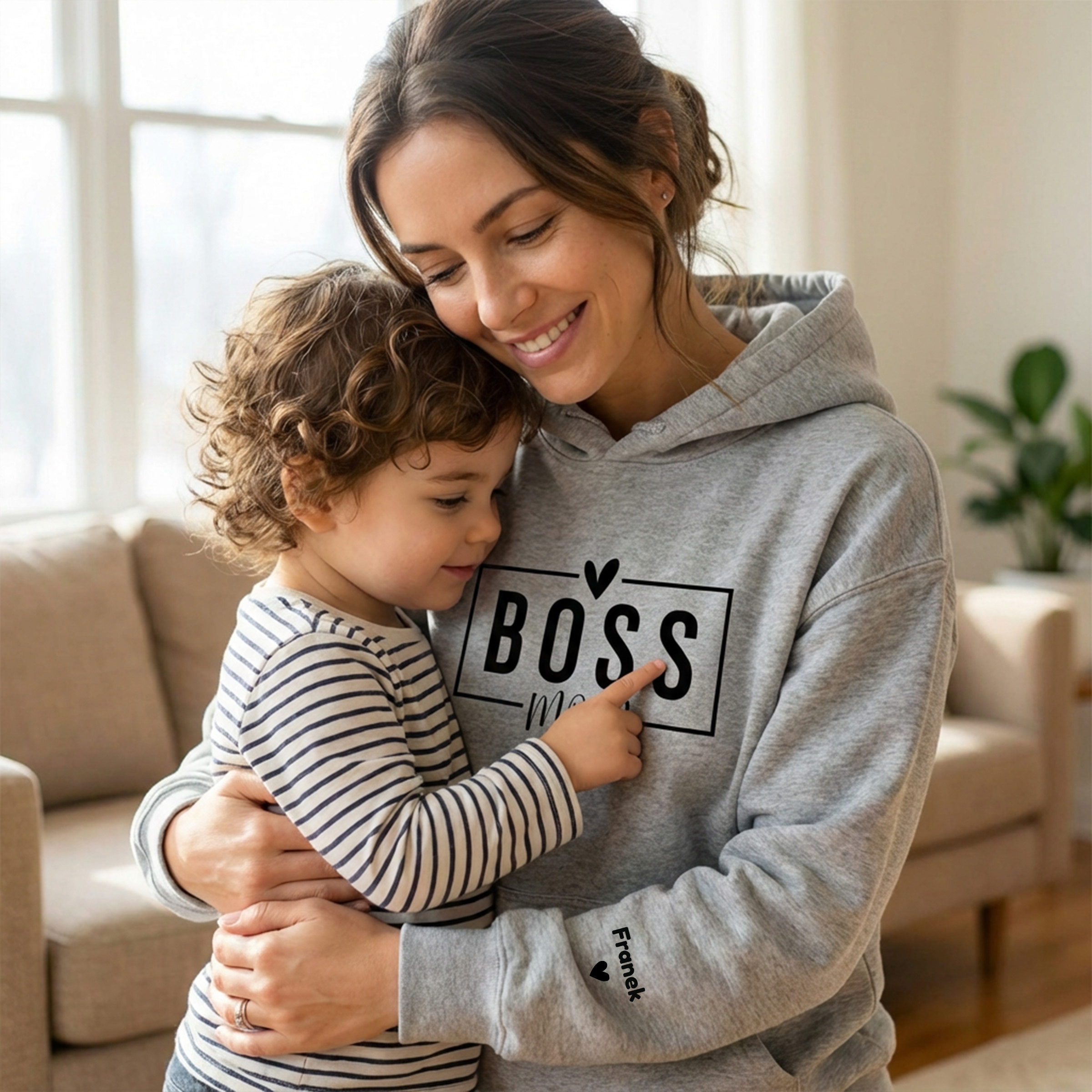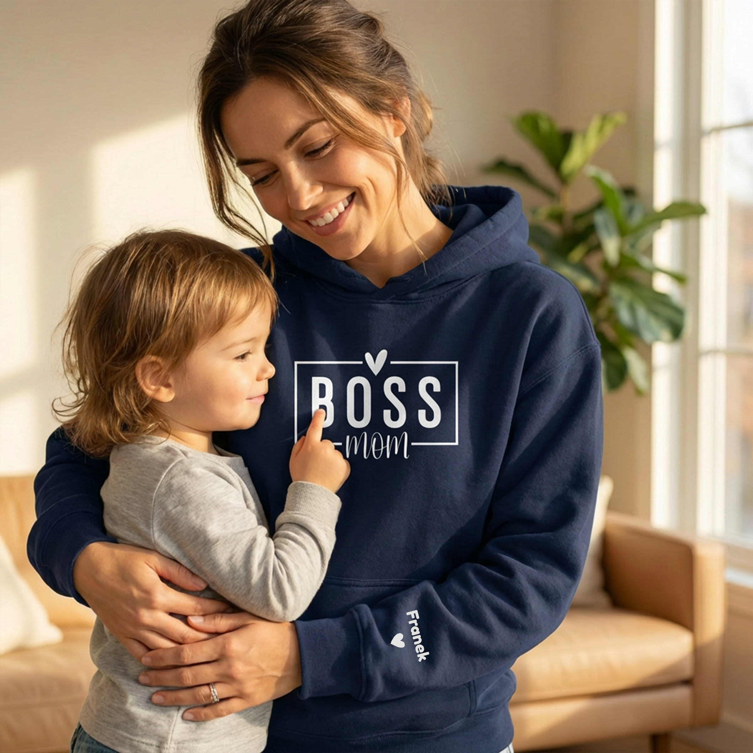 Bluza Personalizowana z kapturem „Boss Mom” – Bo Ty Tu Rządzisz
