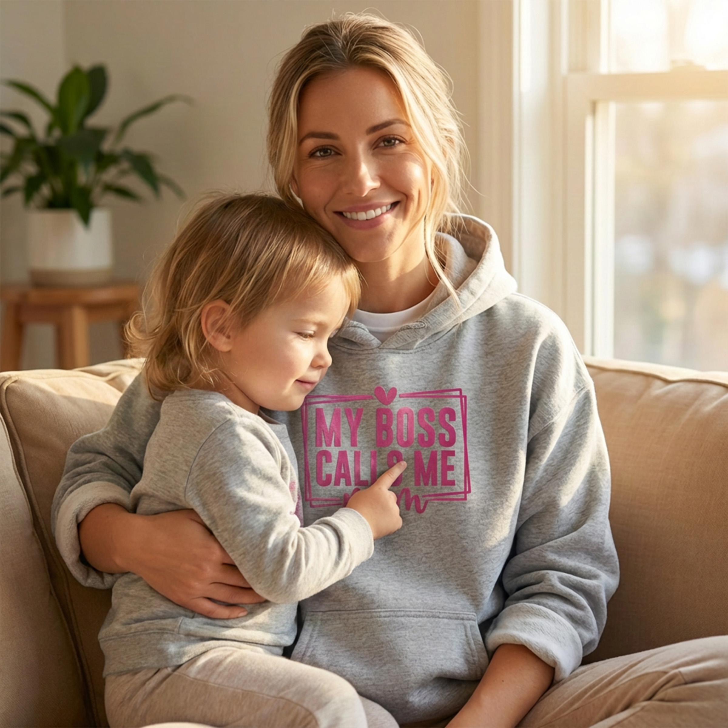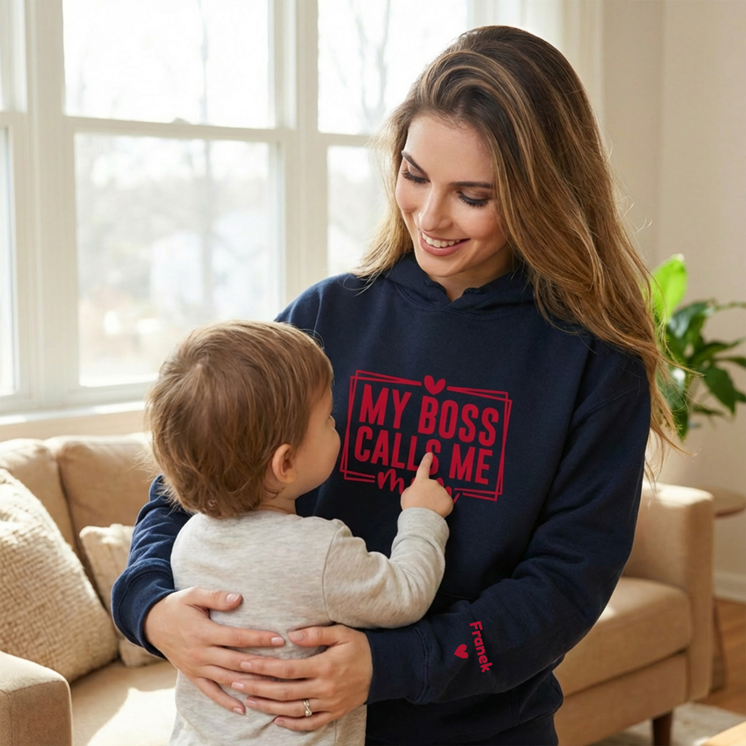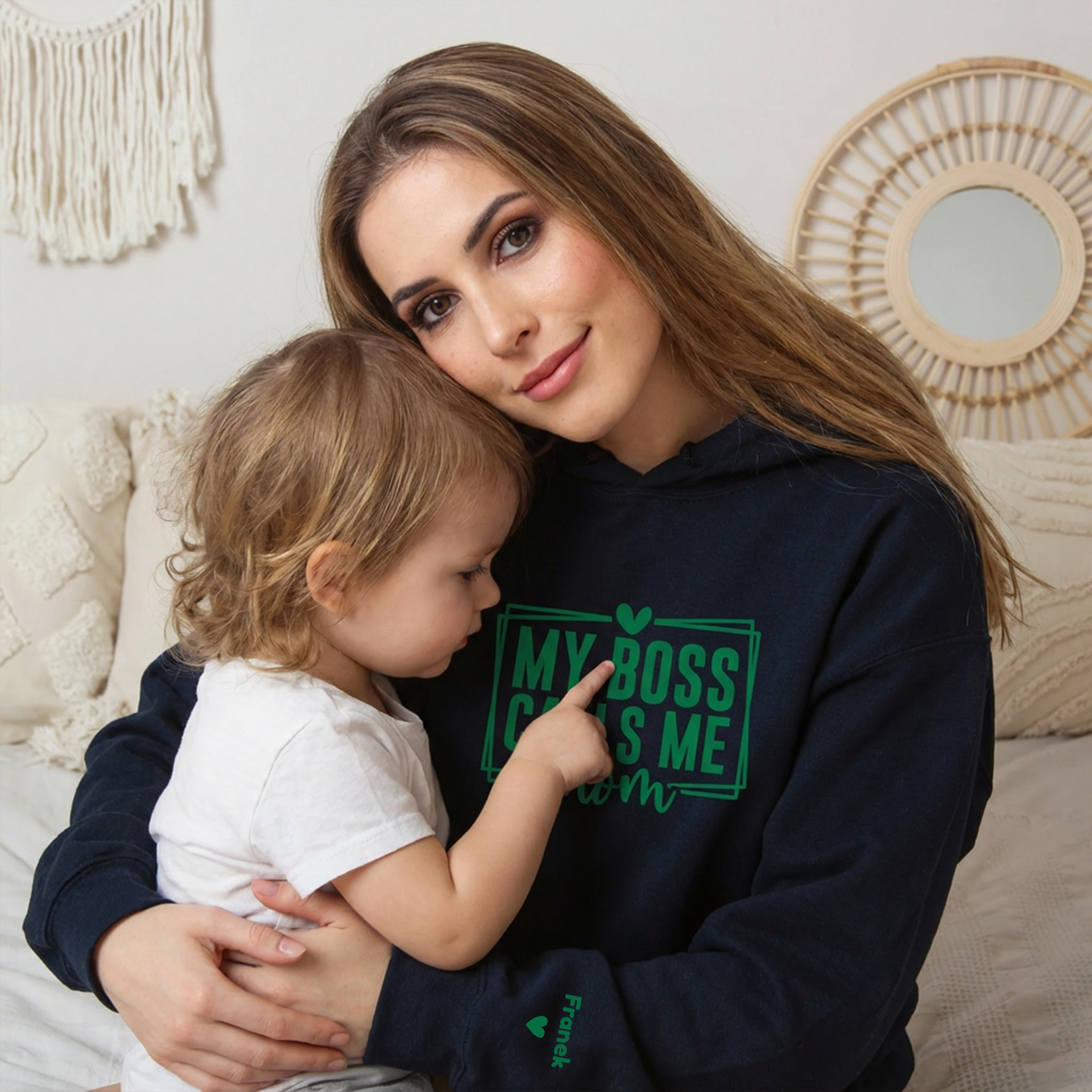 Bluza Personalizowana z kapturem „My boss calls me mom” – Kto tu naprawdę rządzi?