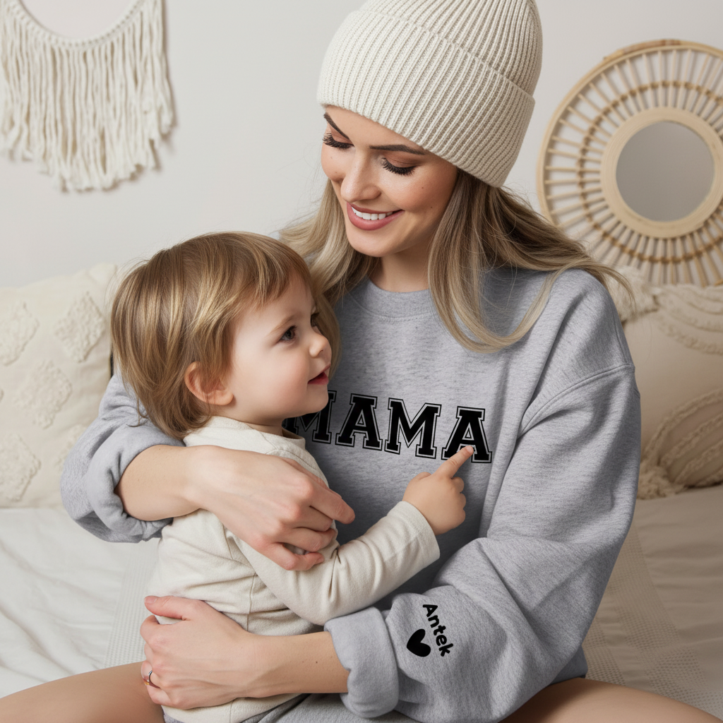Nasza kultowa bluza MAMA z personalizowanymi imionami dzieci to połączenie bezkompromisowej wygody z luksusowym wykończeniem. Stworzona dla kobiet, które celebrują macierzyństwo każdego dnia.